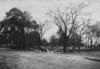 The Salem Common. In olden days was a field with 3 hills and five ponds connecting to a river that led to Collins Cove. A place shared in common with the inhabitants to graze and water their animals in. The field also held the first muster of what would become this nation's National Guard. Then in 1801 Elias Hasket Derby Jr. conscripted 158 people to form the Salem Commons Improvement Fund to hire that militia to take down the hills, fill the ponds and river in, grade the park, add the trees, and a wooden fence.